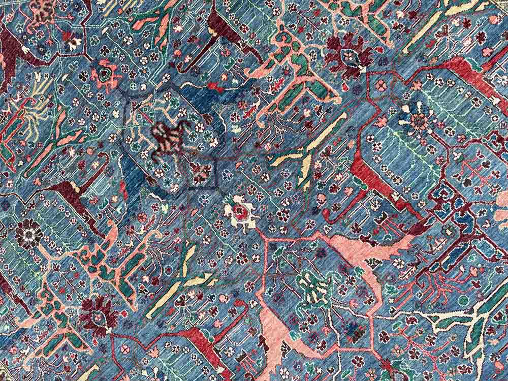 A rug of this size and density transforms a room into a sanctuary. Its depth of blue calms, while its red borders energize. It’s as close to timeless permanence as a handwoven rug can get.